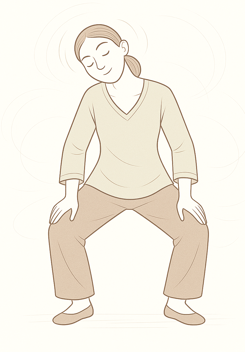 In horse stance, sway your upper body and gently "shake" hips/tailbone.